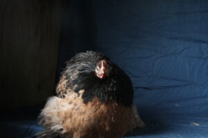 Left; a wheaten modern game female, Right; left a black pekin female, right a wheaten old english game bantam female.