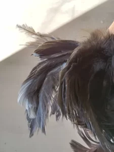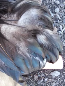 Some common faults include but are not limited to: white feathers, red, yellow, or brassy feathers where it’s supposed to be black, not enough brassiness, incorrect shade of brassiness.